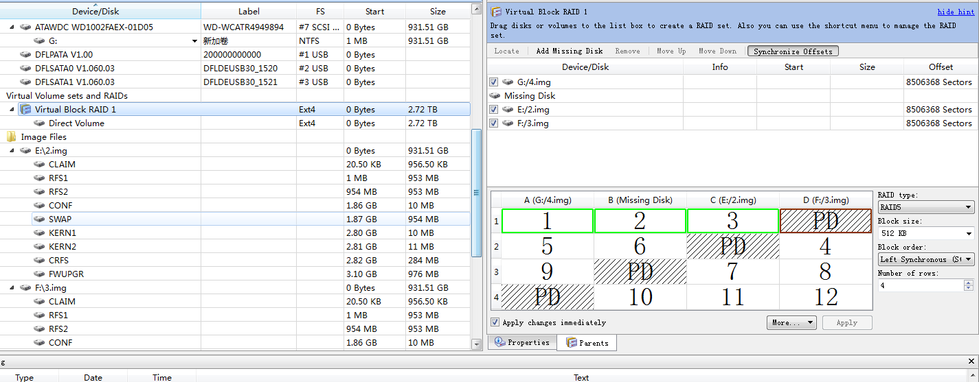 该NAS是由4块ST1TB硬盘组成,文件系统为ext4。通过raid工程师分析后确定raid盘序跟块大小为左同歩,块大小为512KB,开始扇区为:8506368。耗时1天数据完整恢复。付恢复过程部分截图: