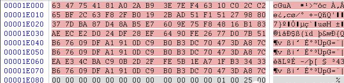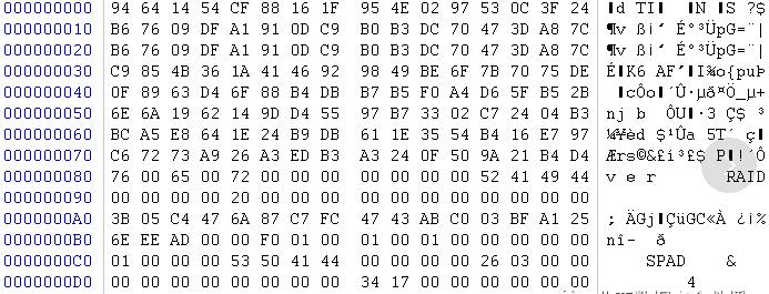 向下搜索数据库页起始标志01 0F,发现此处没有被加密。经过分析,数据库与数据库备份加密方式一样,每128K进行一次加密,由于数据库备份头部记录备份信息,数据库页起始向下偏移。因此数据库中加密的页与数据库备份中加密的页正好错开。